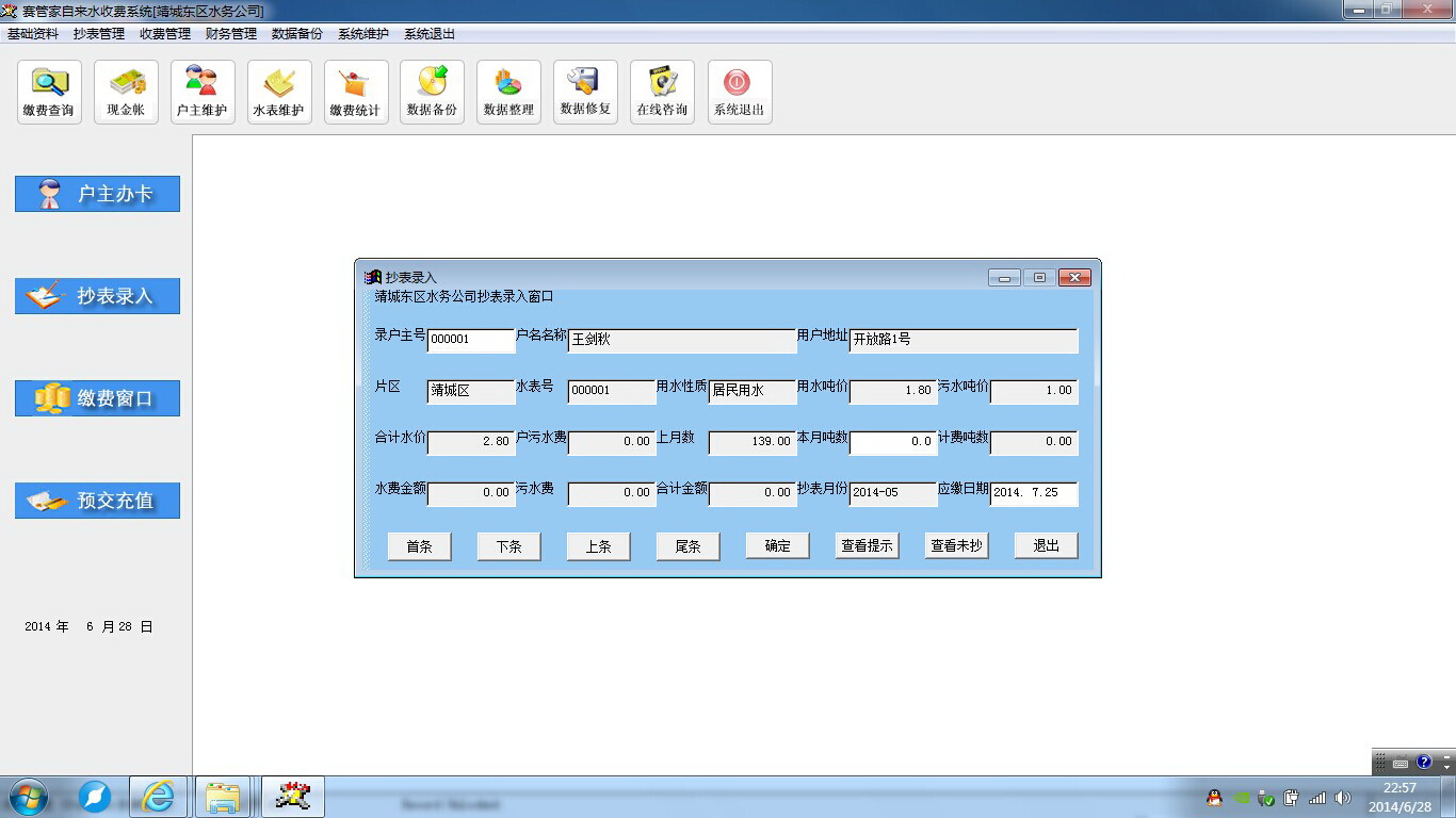 1楼 华军网友 2016-05-24 15:43:58赛管家村镇自来水收费管理系统界面设计很容易上手,功能很丰富,本人极力推荐!