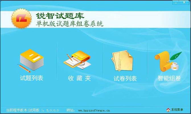 1楼 华军网友 2018-06-18 06:34:34锐智试题库组卷系统 单机版界面设计很容易上手,功能很丰富,本人极力推荐!