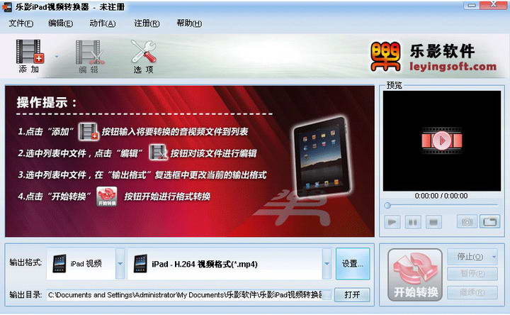 1. 乐影iPad视频转换器可以转换任何格式普清视频比如MP4、RM/RMVB、3GP、AVI、WMV、FLV、MOV、VOB到iPad MP4、H.264、MP3等格式。