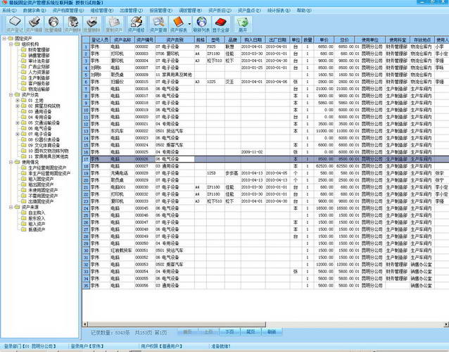 (1)软件日常管理功能:软件的所有管理功能的操作都通过专用客户端软件来完成,客户端软件包括的本软件的全部功能操作模块,如资产档案管理、资产调拨管理、资产借出管理、资产维修管理、资产报废管理模块,采用分页模式从服务器获取数据,避免大数据量在网际传输引起的过长等待时间,操作快捷无延迟。