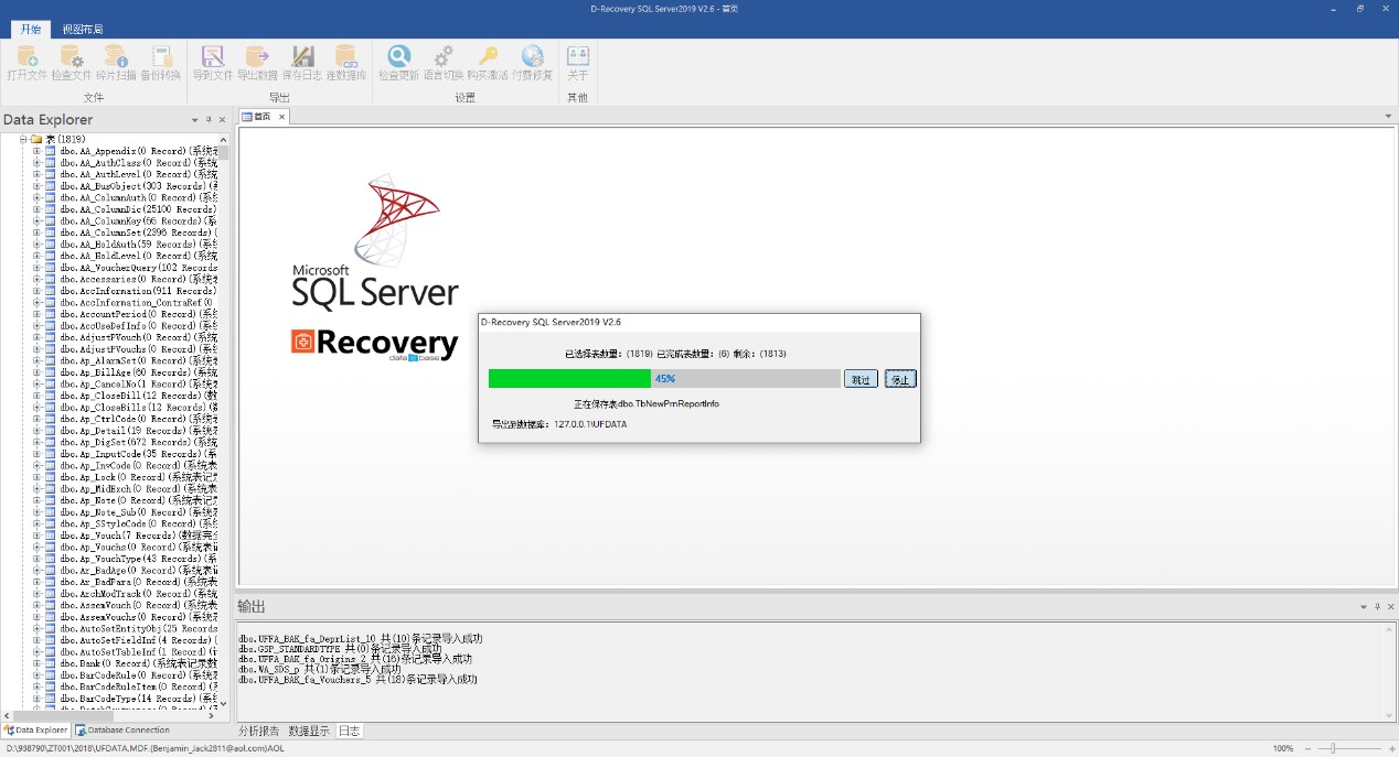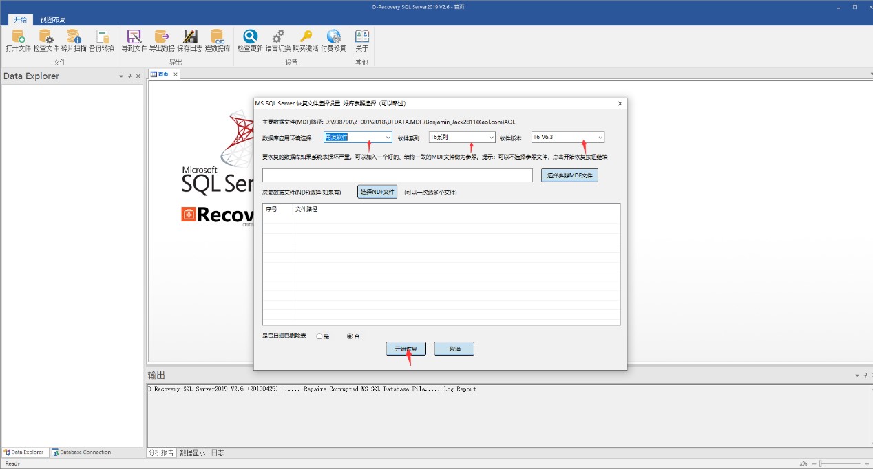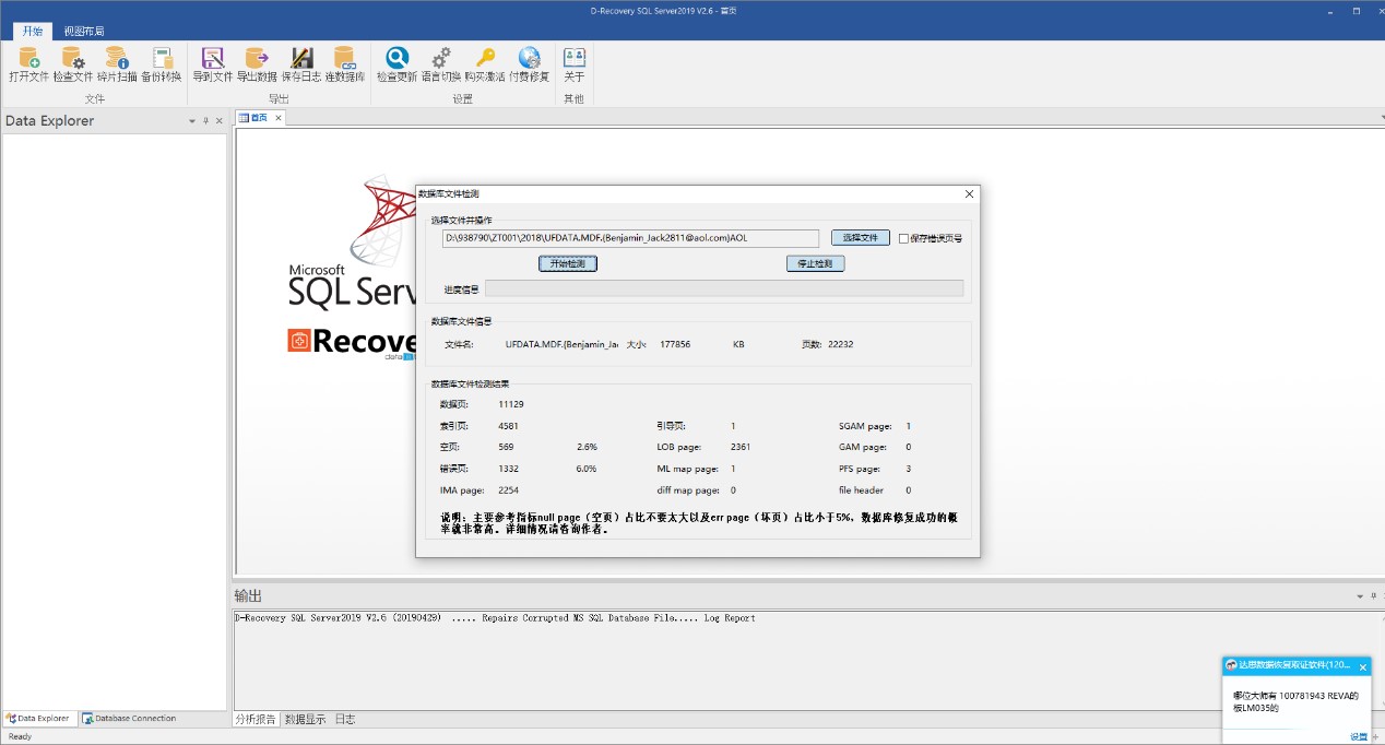 支持SQL数据库文件是由于硬盘损坏或者坏道而数据恢复出来后,无法附加的修复;