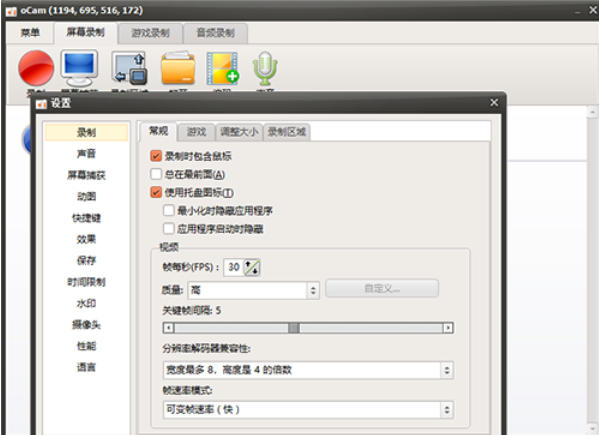 oCam如何设置录制大小?
