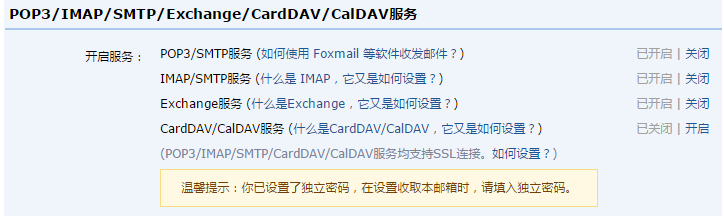 1. 请登录网页邮箱,确认开通了POPIMAP功能(QQ、SINA邮箱等邮箱需要手动开通)
