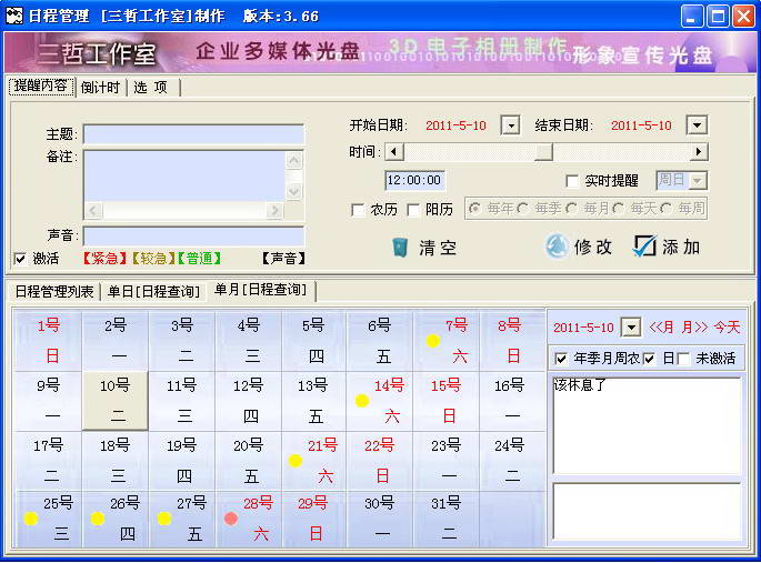 2楼 华军网友 2014-06-15 03:52:36三哲日程管理软件界面设计很容易上手,功能很丰富,本人极力推荐!