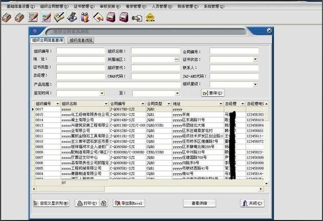 认证管理系统是我公司自主研发的,针对各种行业认证单位量身订做的一套认证管理软件。系统包括组织合同信息管理、证书管理、审核安排、卷宗管理、人员管理、财务管理。包含了认证公司的企业基本流程、业务范围。企业通过该软件能够掌握员工近期的工作,及时安排工作,做出决策。并提供一系列统计分析功能,使企业能够详细了解客户需求和员工信息。