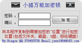 1楼 华军网友 2015-12-07 16:26:44小猪万能加密锁很好用,谢谢啦!!