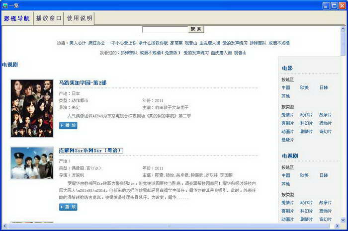 1楼 华军网友 2016-01-07 23:36:55一览影视界面设计很容易上手,功能很丰富,本人极力推荐!