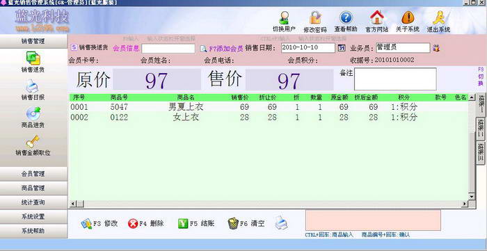 2楼 华军网友 2013-03-16 00:50:45蓝光服装销售管理系统超级棒!点一亿个赞!!!