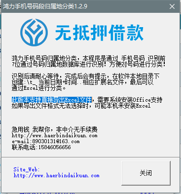 鸿力手机号码归属地分类1.2.9,本程序是通过 手机号码 识别前7位通过号码归属地数据库进行识别!方便对号码进行分类!