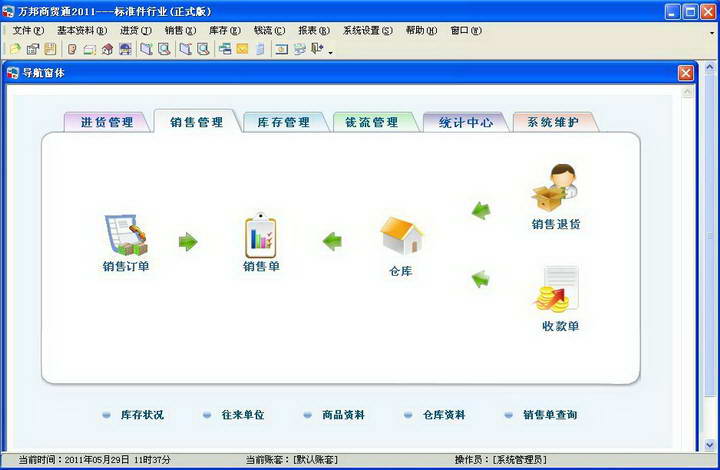 企业财务管理至少应包括钱流帐(出纳及会计)和物流帐(商品进销存)两部分。万邦商贸通不仅管理单项的钱流帐和物流帐,而且将钱流帐与物流帐自动关联在一起,实现企业资金、应收、应付、库存、利润的一体化,随时反映企业的经营状况。
