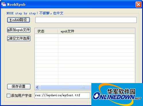 nook中文epub优化(NookEpub)可批量处理中文epub。处理后的文件优先使用t卡fonts目录下的zw.ttf字体库,如果该字库不存在则使用系统随机内建的DroidSansFallback.ttf以确保中文的显示。也就是说,如果对系统随机内建的中文字体不满意,只要把自己喜欢的字体库拷入t卡的fonts目录并重命名为zw.ttf即可。另外同时也添加了其它阅读器的字体路径(sony,iRex DR800SG,kindle2 Duokan,翰林V3+),理论上处理过后的epub在这些阅读器上也可以显示中文。0.1.6起增加了"添加用户字体“功能。以后如果出了新的阅读器,也可以用这个功能添加新阅读器的中文字体路径,从而处理出可以在该阅读器上显示中文的epub书 。