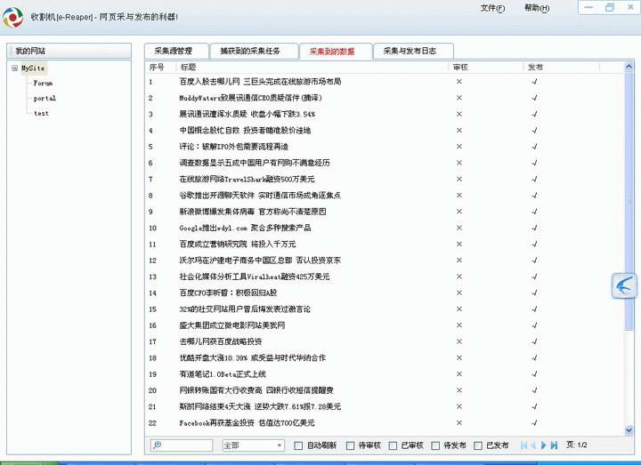 1楼 华军网友 2012-12-17 04:08:00收割机网页采集软件--KJCN专版很好用,谢谢啦!!