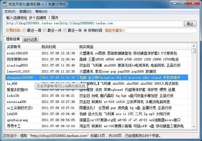 3楼 华军网友 2014-12-31 04:09:16淘宝买家批量提取器功能全面,使用也挺方便的。