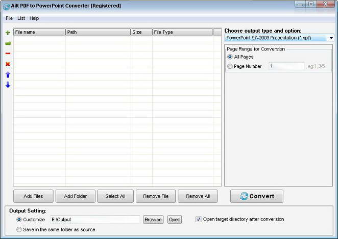 1楼 华军网友 2012-01-21 12:40:08Ailt PDF to PowerPoint Converter很好用,谢谢啦!!