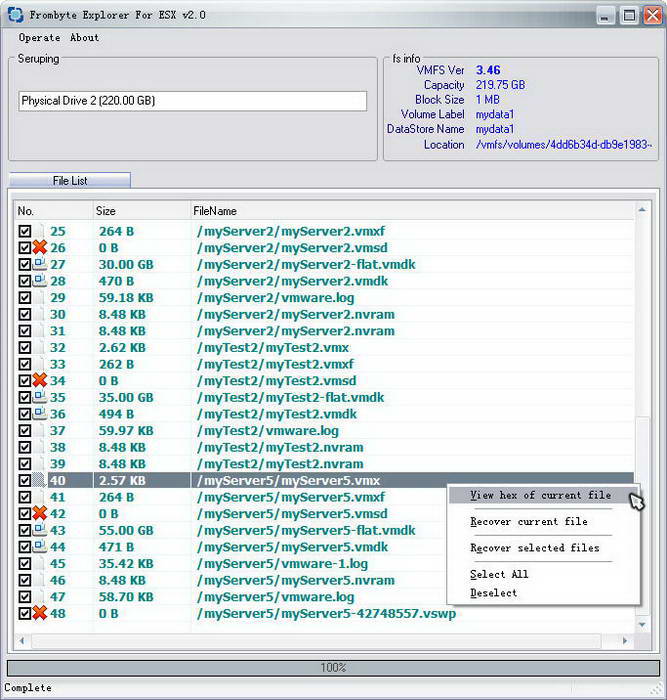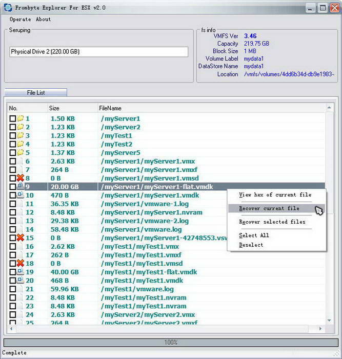 vmware虚拟机数据恢复软件V3.3 是由北亚数据恢复中心所开发的数据恢复软件套件中的一个模块,其主要对ESX/ESXi 3.x/4.x/5.x 系统上的VMFS文件系统的卷损坏、误删除虚拟机/文件 等数据急救,使用户的损失降到最低。
