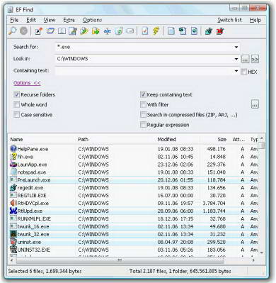 1楼 华军网友 2015-12-06 13:06:57Portable EF Find界面设计很容易上手,功能很丰富,本人极力推荐!