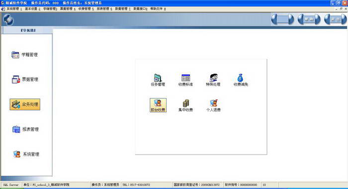 ◆ 开发背景:目前许多学校对学生的学费、住宿费、书籍费等,采用人工收费,手工开票来完成,然后凭借发票,财务手工生成台帐。这样以来,开学时,学校的交费窗口总是学生拥挤不堪,财务人员手忙不停,做着大量重复而又不得不做的手工劳动。做台帐时更难,需手工将发票上的数据往电脑中填,这样的重复劳动,一个人需要十天半个月甚到个把月才能录入完,而且又容易填错、填漏,查询起来非常困难。有的学校虽然采用银行代收,但台帐必须手工来完成。针对以上这种情况,我司开发了《学校收费管理系统》,提供多种数据接口,批量数据可一次性导入,减轻财务人员的录入工作量,各学校可通过利用计算机,规范、整合开票流程,实现信息多方位共享。