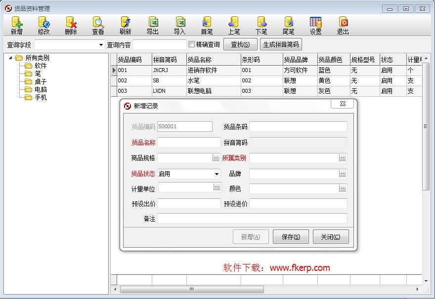 4 商品资料支持树形分类管理。