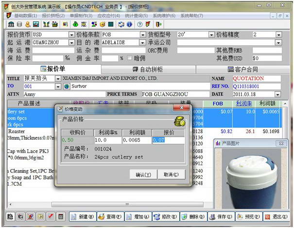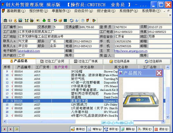 1楼 华军网友 2016-04-21 16:47:39创大外贸管理软件很好用,谢谢啦!!