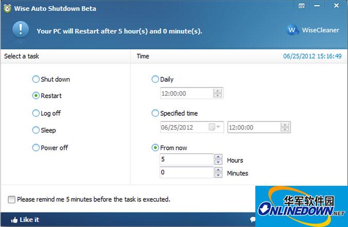 1楼 华军网友 2019-11-08 02:47:07智能自动关机(Wise Auto Shutdown)很好用,谢谢啦!!