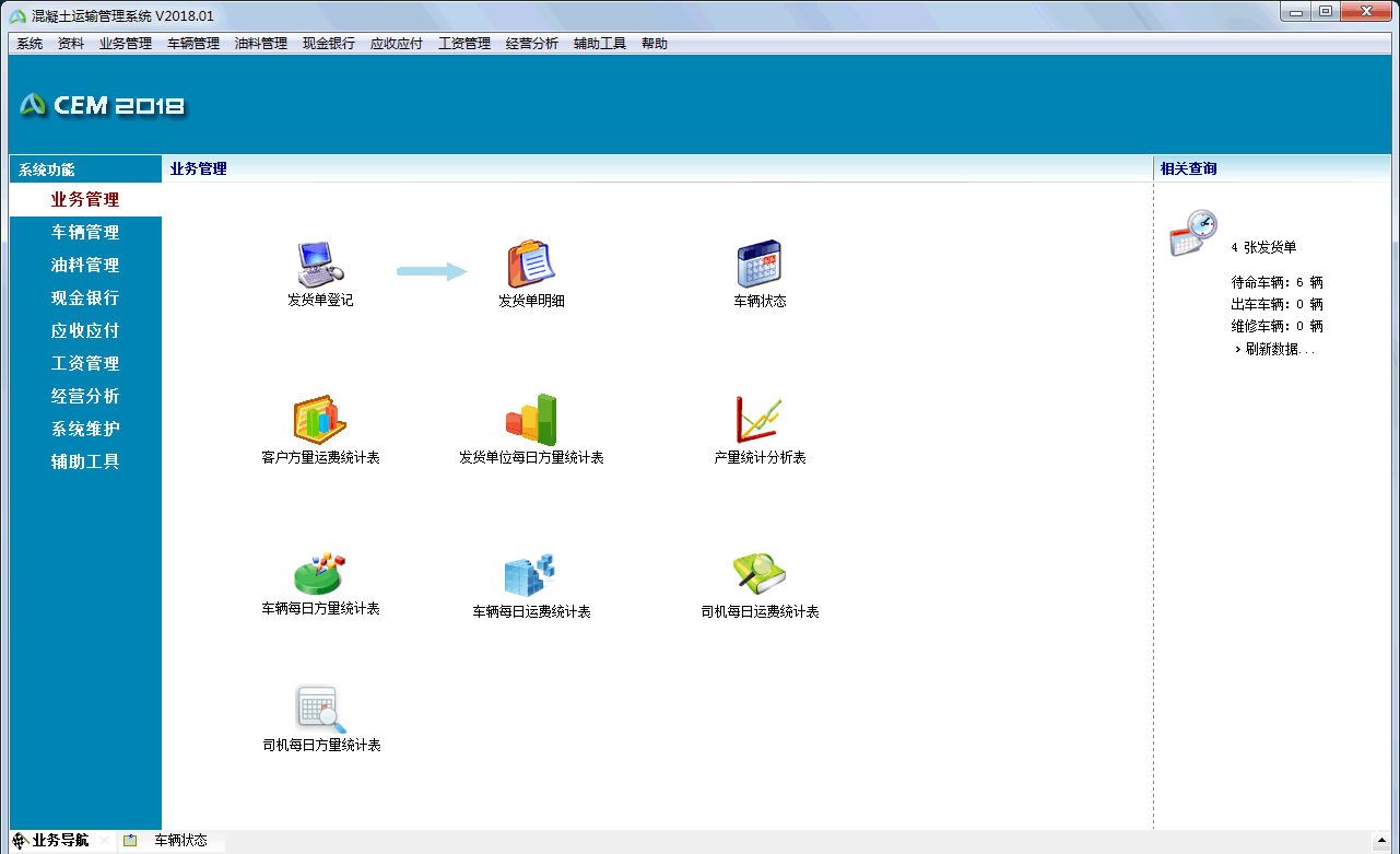 5、相关报表:应收运费对账单、应收运费汇总、应付配件采购对帐单、应付配件采购汇总、应付加油对帐单、应付加油汇总、应付维修对帐单、应付维修汇总。