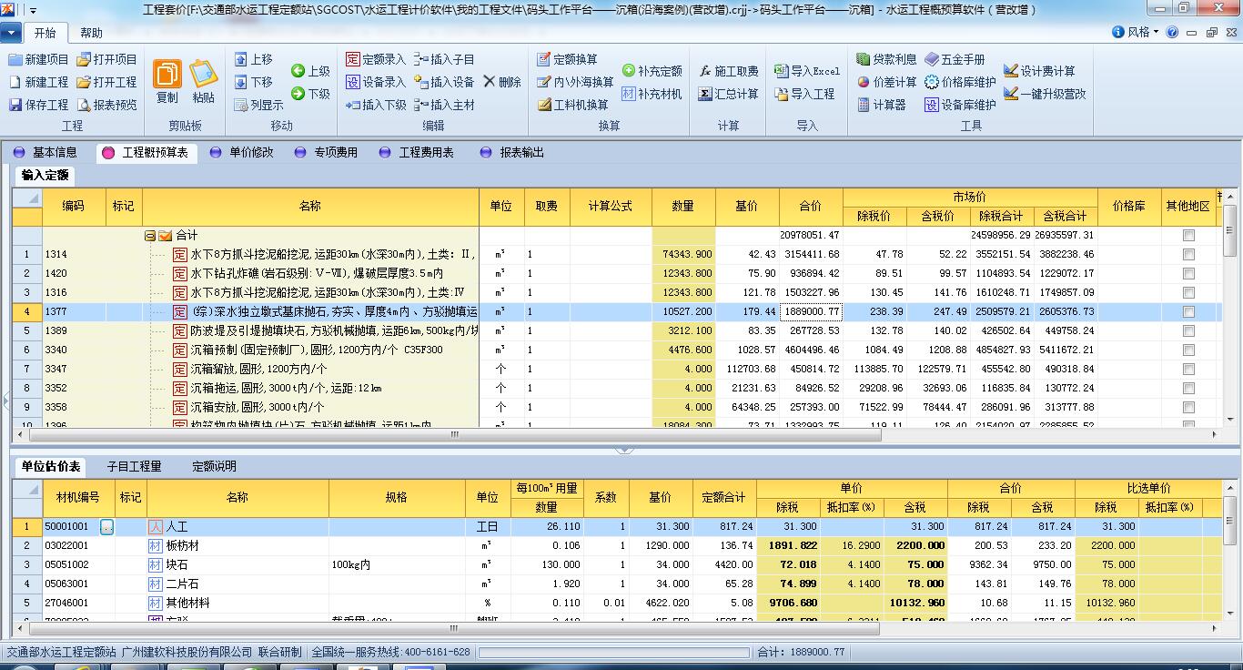《水运工程概预算软件 2018版》是由交通部水运工程定额站与广州建软科技股份有限公司联合开发了全新的“水运工程计价软件”,软件支持水运行业营业税、增值税两种计税模式,目前软件已经通过行业内专家评测。软件收录了现行新沿海港口、新内河航运工程、疏浚、疏浚测量、新远海区域等定额,并适用于沿海港口工程、内河航运工程、疏浚、疏浚测量及远海区域的投资估算、概算、预算、结算的编制工作,在定额站的直接参与和指导下,新版软件能够按照现行计价标准准确计算各类水运工程造价,也是市场上唯一能够符合有关计价标准的水运工程计价软件。