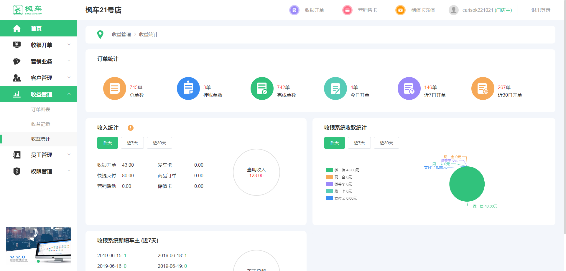 2楼 华军网友 2020-03-02 14:37:58枫车门店电脑版界面设计很容易上手,功能很丰富,本人极力推荐!