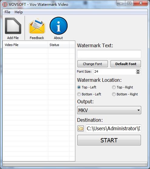 Vov Watermark Video可以在视频文件中插入任何文本,无论是哪个位置,支持拖放文件。您可以更改目标文件夹。默认的目标文件夹是桌面文件夹。支持的输入和输出文件类型有MP4、MKV、AVI、MPEG、MOV、WMV和FLV。如果你想简单的在视频添加你的作者名字,可以试试Vov Watermark Video