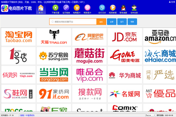 【功能特点】 - 支持300多个电商平台的图片下载 - 支持淘宝、天猫、阿里巴巴、京东、苏宁易购、生意网等平台视频下载