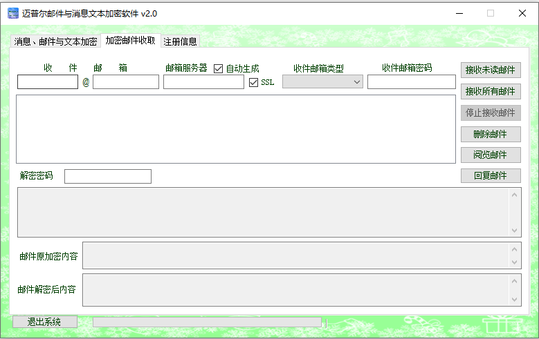 3楼 华军网友 2020-08-31 02:24:59迈普尔邮件与消息文本加密软件还不错,下载非常快,送你个好评!