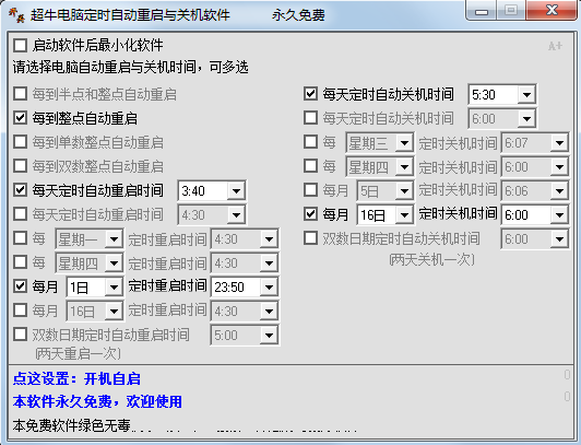 1楼 华军网友 2020-11-27 10:08:18超牛电脑定时自动重启与关机软件很好用,谢谢啦!!