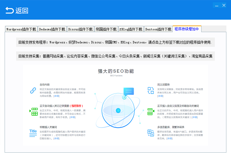 2楼 华军网友 2021-11-24 06:27:17采集器助手界面设计很容易上手,功能很丰富,本人极力推荐!