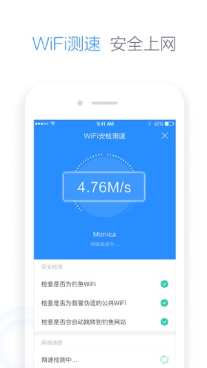 4. WiFi安全检测,一秒识别提醒钓鱼WiFi,避免隐私泄露及钱财损失