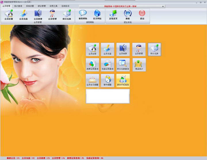 美酷(美容院)美容美发管理软件是一款专门为美容行业设计的专业美容美发(美容院)管理软件,广泛适用于美容会所,美容院信息化管理等场合,美酷管理系统具有强大的会员管理,会员打折,会员积分管理,员工管理等功能,能非常方便的打印,记录会员每次消费情况,消费剩余金额,能统计每月消费报表,管理报表等功能。设计新颖的客户关怀功能是很多老板的最爱,严格的物品消耗追踪管理让成本不再是管理的黑洞。通过美酷管理软件的完善管理,让您的企业经营从此轻松。