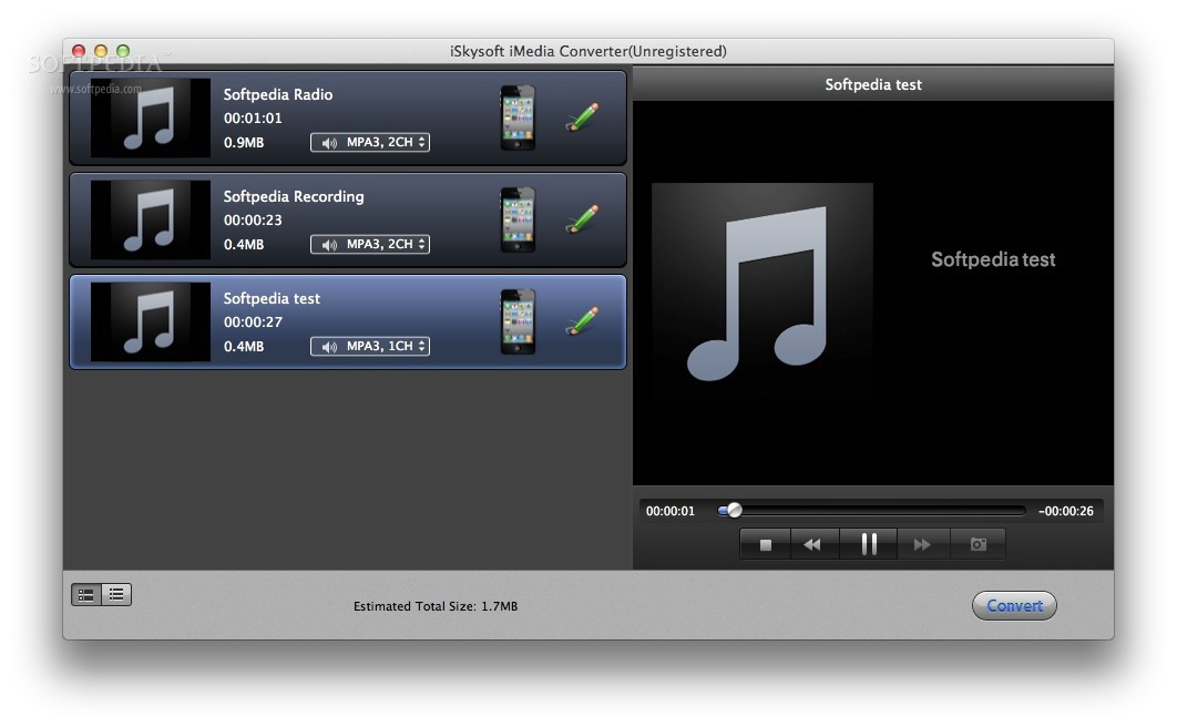 1楼 华军网友 2015-08-03 22:42:01iSkysoft iMedia Converter for Mac很好用,谢谢啦!!