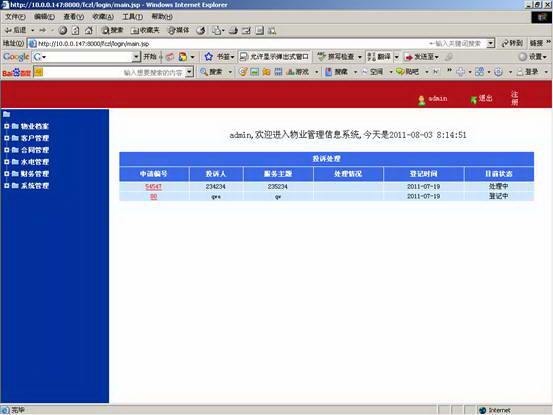 主要针对对商户的报修、投诉、放行等服务管理。