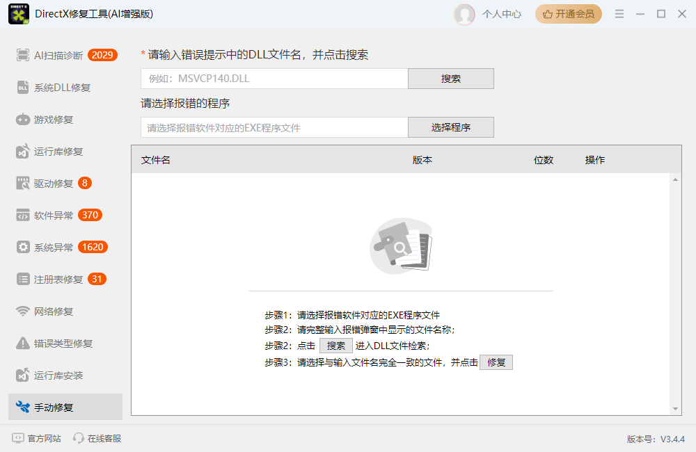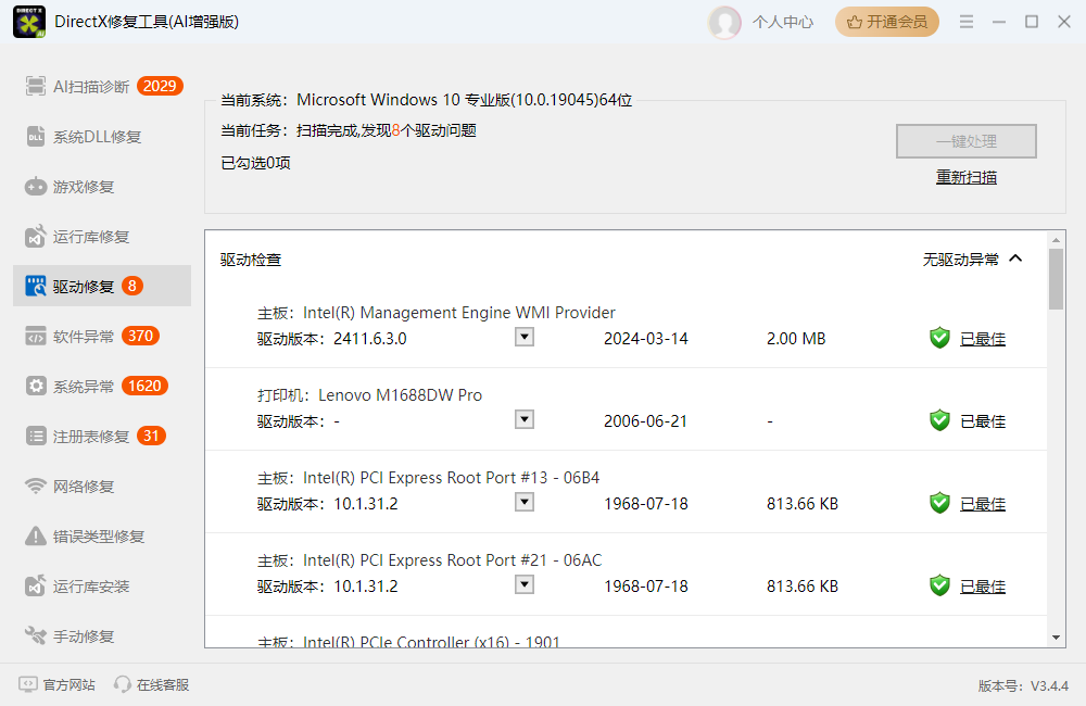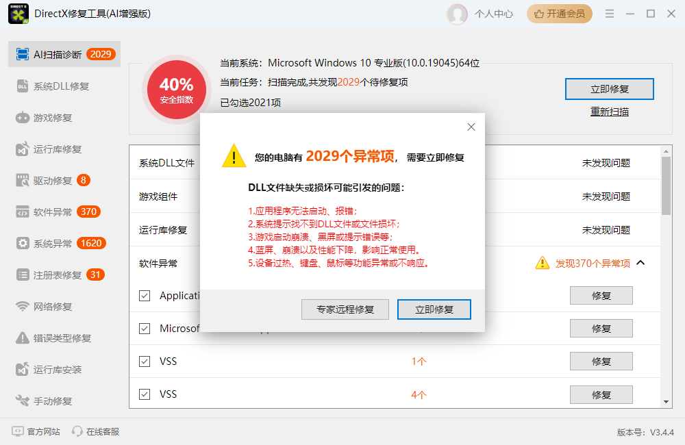 不仅修复DirectX,还集成了所有Visual C++运行时库的检测与修复,解决兼容性问题