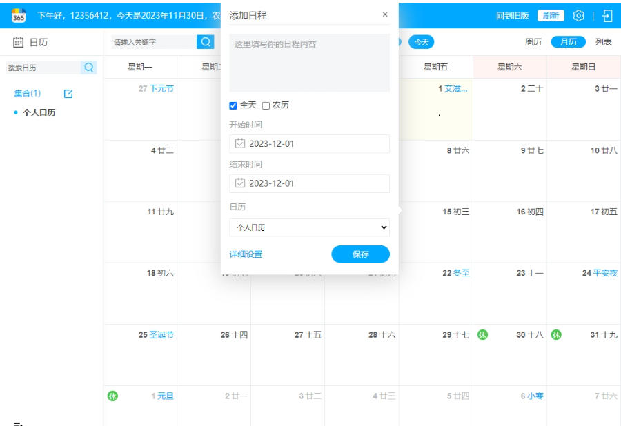节日提醒:自动标记国内外传统节日,并支持自定义提醒。
