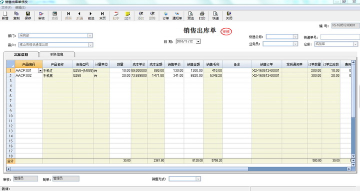 提供销售订货、发货通知、仓库发货、销售退回、销售结算等全面的销售业务流程管理,以及订单执行情况跟踪、销售和盈利情况分析、销售业绩分析、财务信息分析等。同时销售出库单提供“多模板打印”功能,可以根据不同的客户打印不同的销售单据格式。