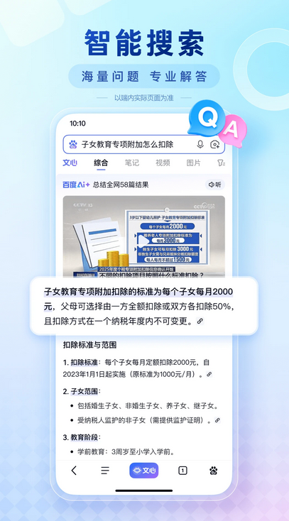 语义理解升级:通过整合文心大模型与DeepSeek模型,AI搜索功能具备更强的语义理解能力,能够根据用户搜索意图进行智能推理。例如,输入多个相关关键词时,AI搜索会结合上下文提供最相关的答案,极大提高搜索效率。