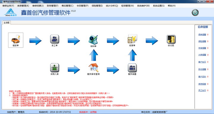 鑫首创汽车维修管理系统:适用于所有汽车维修及配件销售门市、公司,从车辆进厂的接待、派工领料到 车辆的维修、结算出厂,以及对维修车辆的报表统计,此软件提供了完整的管理解决方案。