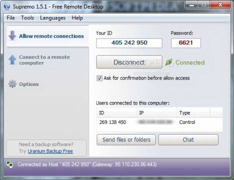 1楼 华军网友 2017-04-14 21:49:31Supremo Remote Desktop很好用,谢谢啦!!