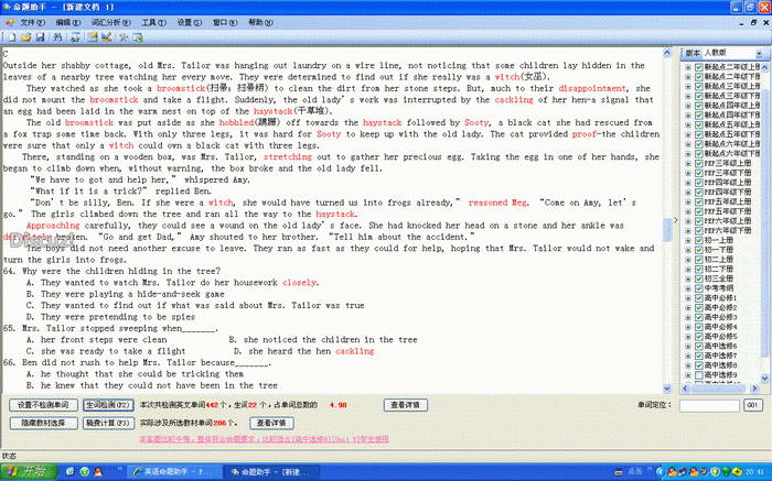 2、词数统计。软件可以统计试题总词数以及去掉重复单词后的实际考查词数,以方便命卷人员把握试题的总词汇量;统计生词的总数及去重后的生词数,以方便把握整体生词量。
