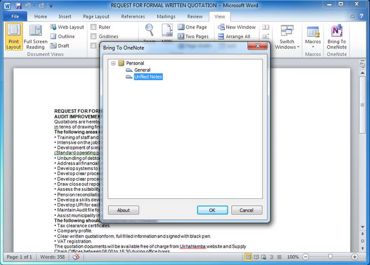 Bring to OneNote