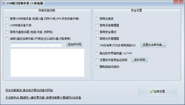 1楼 华军网友 2016-05-03 09:00:12USB端口控制专家很好用,谢谢啦!!