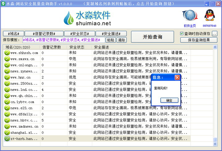1楼 华军网友 2015-09-11 18:53:42水淼·网站安全批量查询助手界面设计很容易上手,功能很丰富,本人极力推荐!