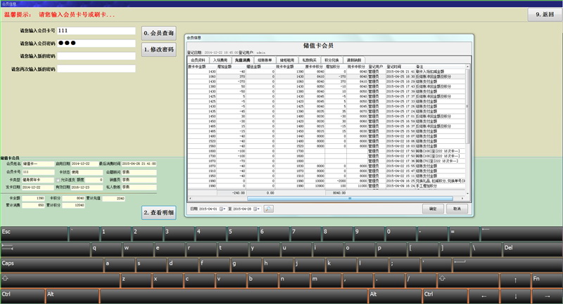 1.会员可在终端设备上修改密码,查询充值消费记录;