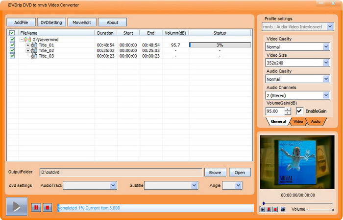 1楼 华军网友 2013-07-12 09:38:13iDVDrip DVD to RMVB Converter很好用,谢谢啦!!