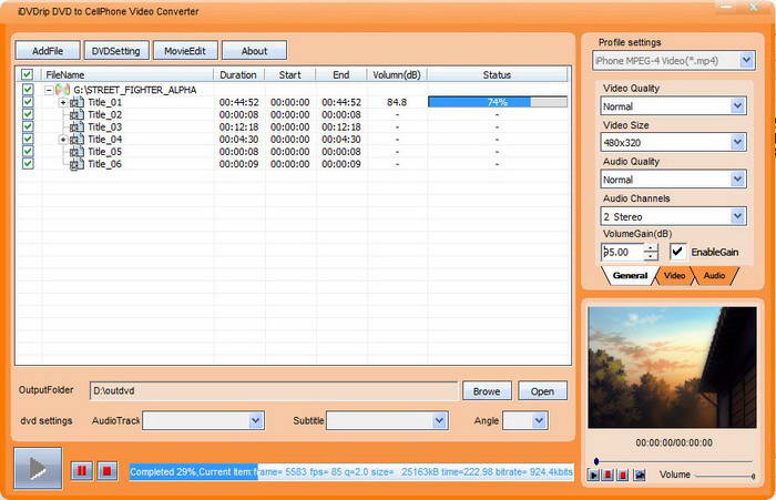 1楼 华军网友 2015-04-15 20:37:52iDVDrip DVD to Cell Phone Converter界面设计很容易上手,功能很丰富,本人极力推荐!