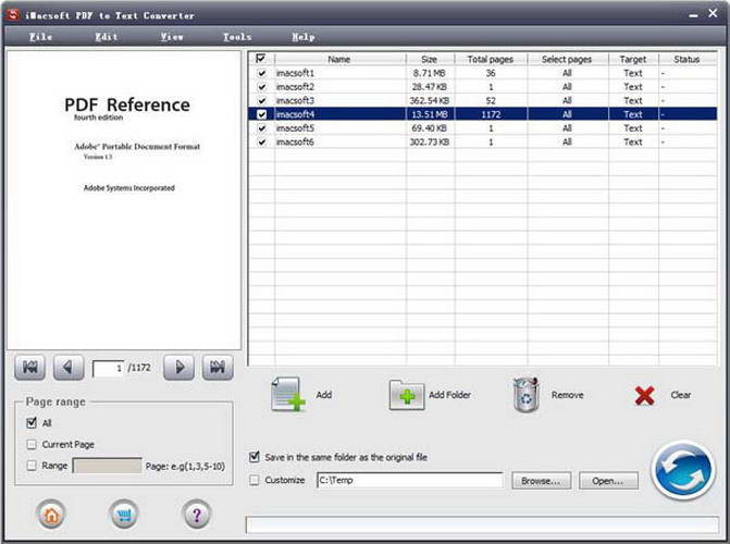 1楼 华军网友 2020-09-14 12:07:33iMacsoft PDF to Text Converter界面设计很容易上手,功能很丰富,本人极力推荐!
